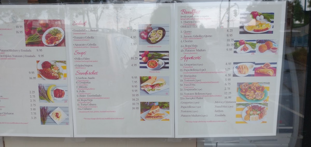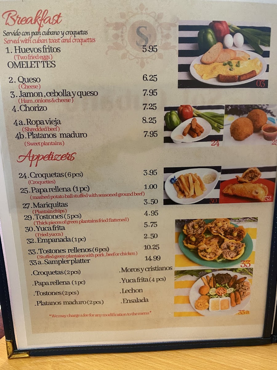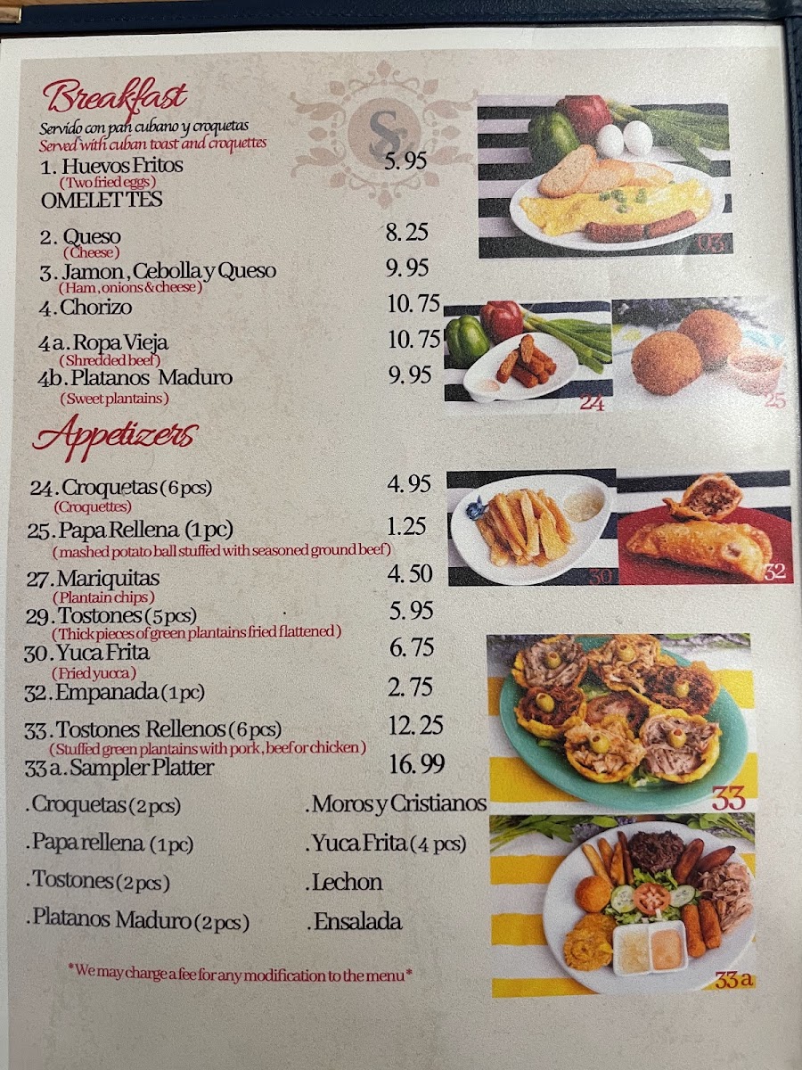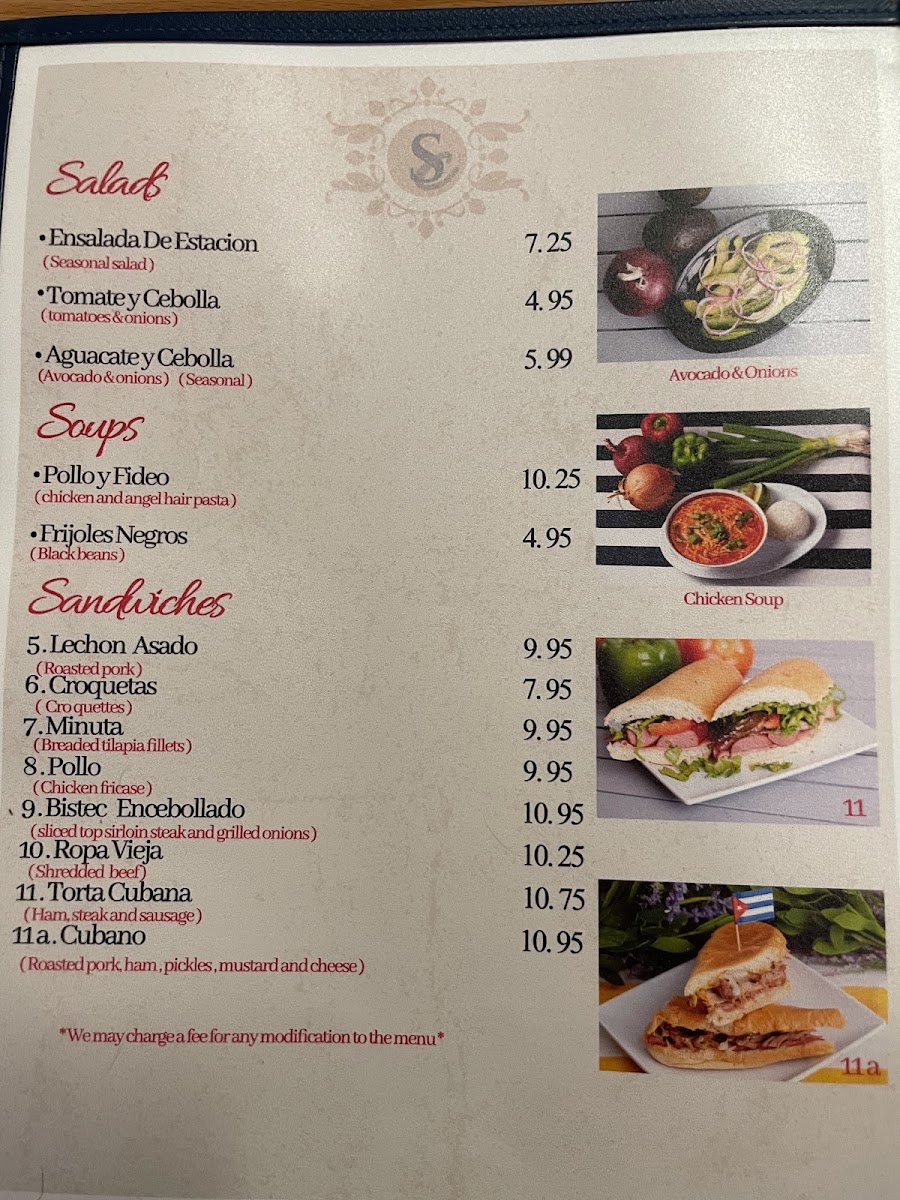 Sol Cubano Menu