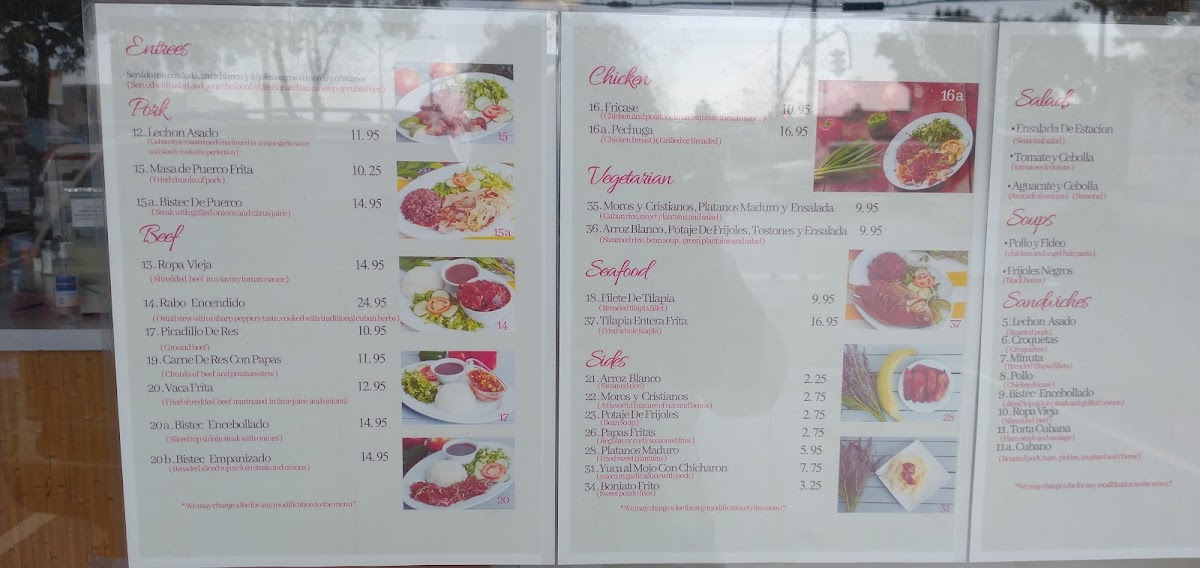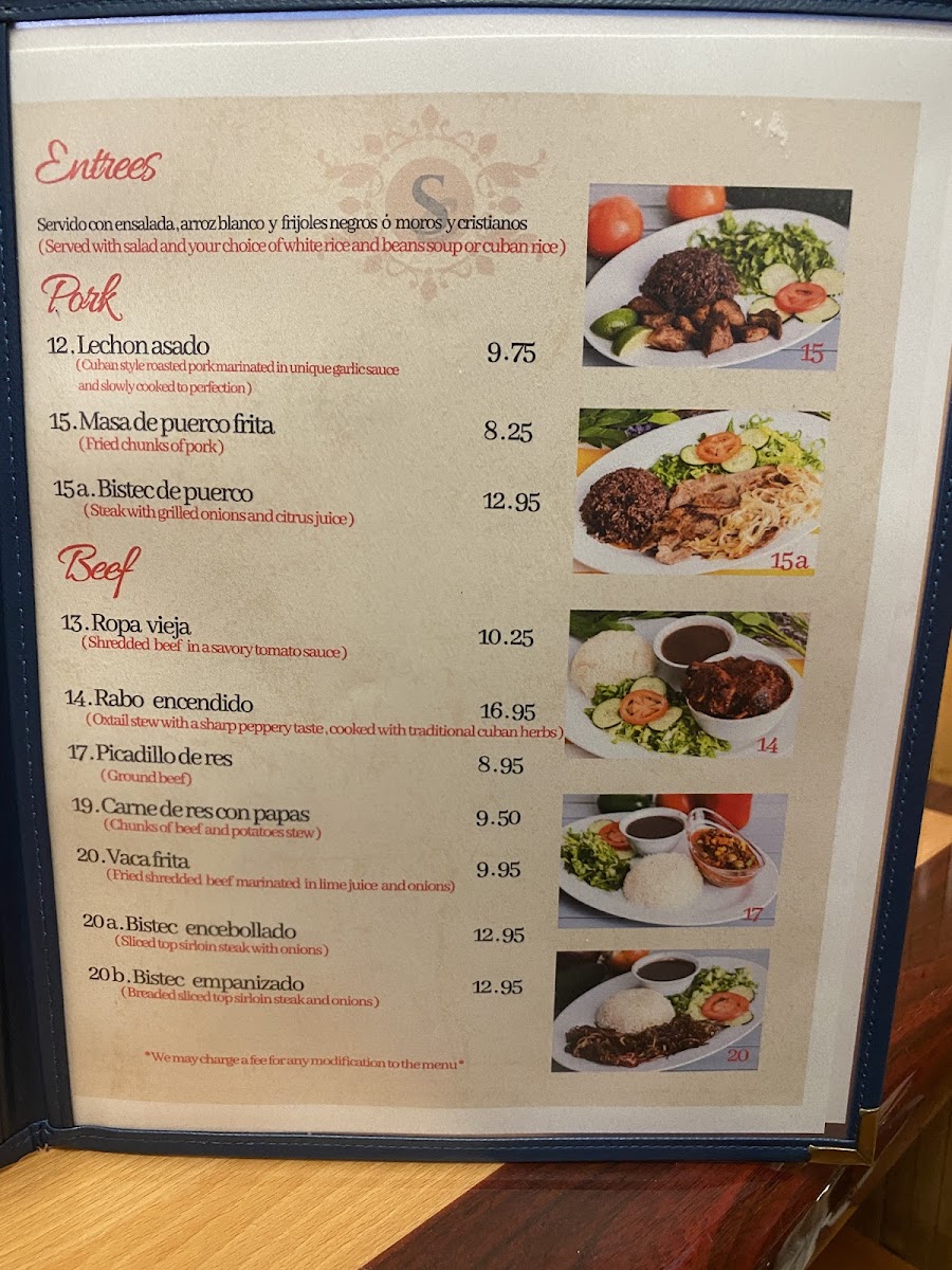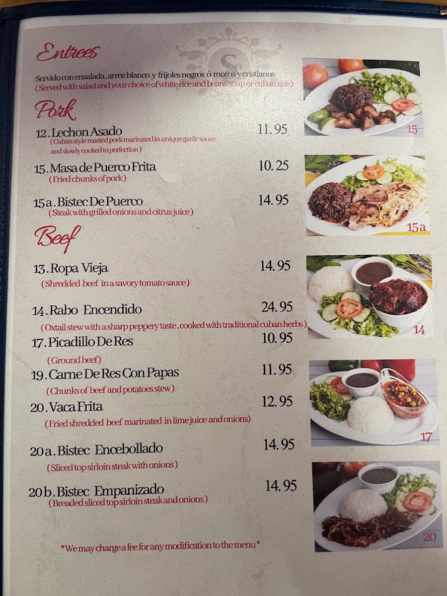 The menu features a delightful array of dishes that highlight the essence of Cuban cuisine.